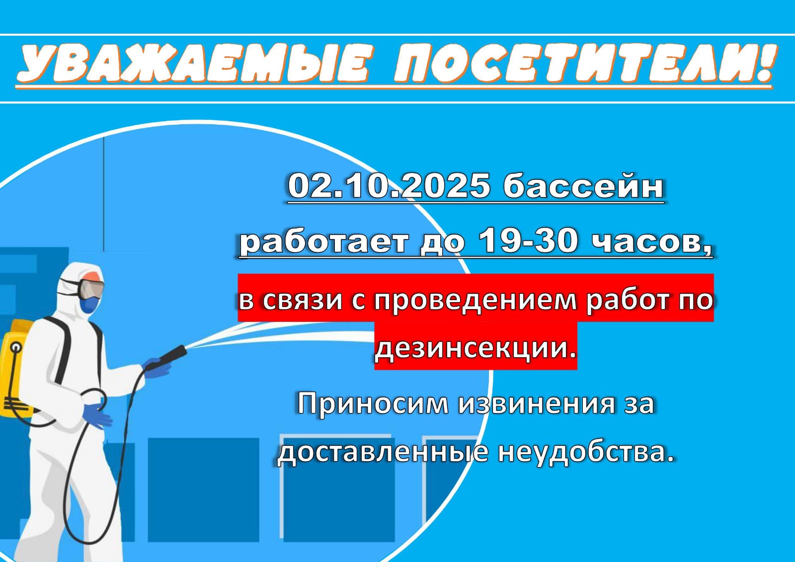 02.10.2025 бассейн работает до 19:30!